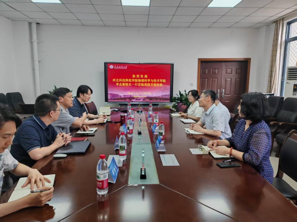 5月9日,河北科技师范学院物理科学与技术学院李志新院长一行莅临我院集贤楼524会议室,就师范专业认证整改、专业硕士点建设等工作开展交流学习。学院党委书记杨云、院长余鹏、副院长罗海军及教师代表李万俊、黄旭东出席了座谈会。