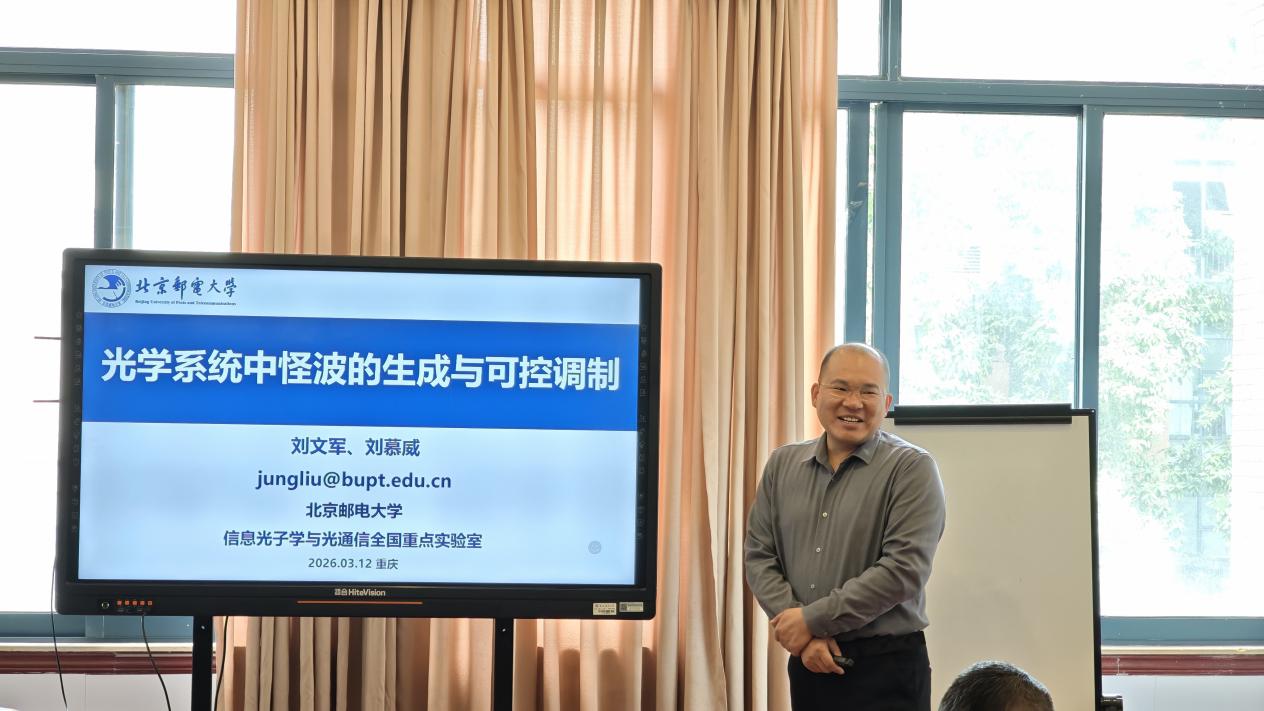 3月13日上午,应物理与光电工程学院邀请,北京邮电大学博士生导师刘文军教授来院开展学术交流,在物理实验楼217会议室作题为《光学系统中怪波的生成与可控调制》的学术报告。学院理论物理团队相关方向师生参加报告会。